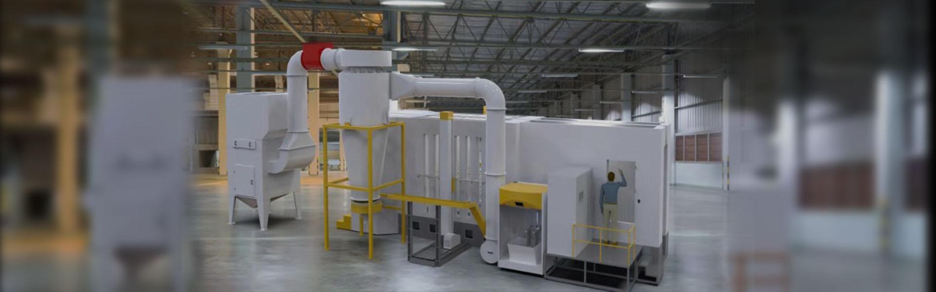 自動(dòng)粉末回收噴房 換色容易、節(jié)省空間,搭配二次過(guò)濾系統(tǒng)并采用室內(nèi)排氣系統(tǒng),阻絕環(huán)保問(wèn)題。
