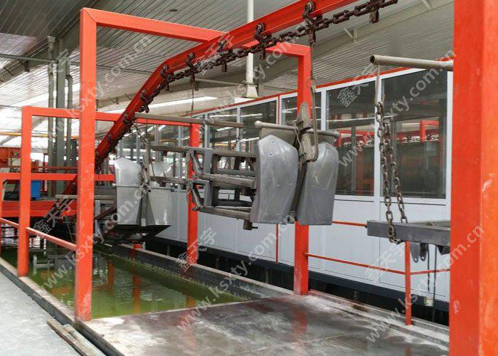 電泳涂裝設備可以分為連續通過式和間歇垂直升降式兩大類,連續通過式電泳設備組成流水生產線,適于大批量涂裝生產,在工業上應用很廣;而間歇垂直升降式,初始形式是采用單軌電葫蘆,用人工控制,適用于批量較小的涂裝作業。近年來隨著計算機技術的進步,機電一體化技術發展很快,用微機控制垂直升降的程控小車已在涂裝生產線獲得應用,它同連續通過式電泳設備相比,同樣批量的生產線長度顯著縮短,而且具有靈活變化各工藝過程的優點,備受人們的關注。